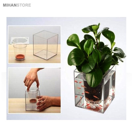 گلدان آکواریومی از سری لوازم تزئینی لوکس و مدرن است که امکان نگهداری انواع گیاه و آبزیان را به صورت همزمان در یک جا فراهم می کند. این آکواریوم دارای یک استند برای نگهداری گلدان است که می توانید گل های زینتی ، سبزه ، کاکاتوس و . . . را بر روی آکواریوم خود داشته باشید. بدنه این آکواریوم از جنس اکرولیک شفاف می باشد و با قرار دادن گلدان داخل محفظه تعبیه شده این گونه به نظر میرسد که گلدان در میان آب و ماهی های آکواریوم به صورت شناور قرار گرفته است و ماهی ها می توانند به سادگی اطراف گلدان حرکت کنند.