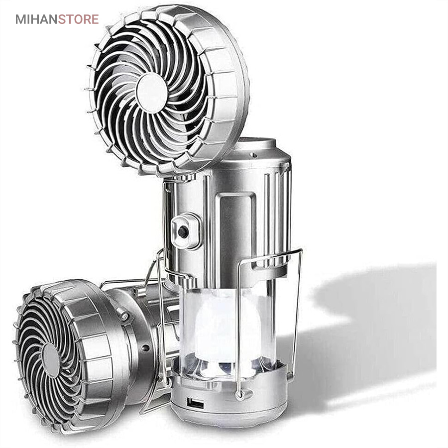 چراغ کمپینگ خورشیدی دارای پنکه و پاوربانک محصولی ساده درعین‌حال کاربردی است که می‌تواند در زمان سفر یا در شرایط اضطراری در شهر مورد استفاده قرار گیرد. در قسمت بالایی این فانوس، دو دسته‌ی فلزی قرار دارد؛ به همین دلیل می‌توان آن را داخل چادر یا هر سطح برجسته‌ای آویزان کرد و از نور آن بهره برد. چراغ کمپینگ و پاوربانک خورشیدی چندکاره همراه خوبی برای سفر به طبیعت، کوه‌نوردی و پیاده‌روی در هنگام شب هستند. گاهی ما به مکانی سفر می‌کنیم که نور کافی در آن وجود ندارد؛ در این صورت، داشتن یک لامپ فانوسی بسیار ضروری به نظر می‌رسد. همچنین از لامپ آن به‌صورت کشویی استفاده خواهید کرد و در صورت نیاز می‌توانید آن را باز کرده، به‌راحتی از روشنایی این لامپ فانوسی بهره‌مند شده و محیط پیرامون خود را روشن کنید. چراغ کمپینگ و پاوربانک خورشیدی چندکاره انتخابی خوب و باکیفیت برای داشتن سفری خوش است که می‌توانید از آن برای روشن‌کردن چادر، اتومبیل یا هر محیط تاریک دیگری استفاده کنید.