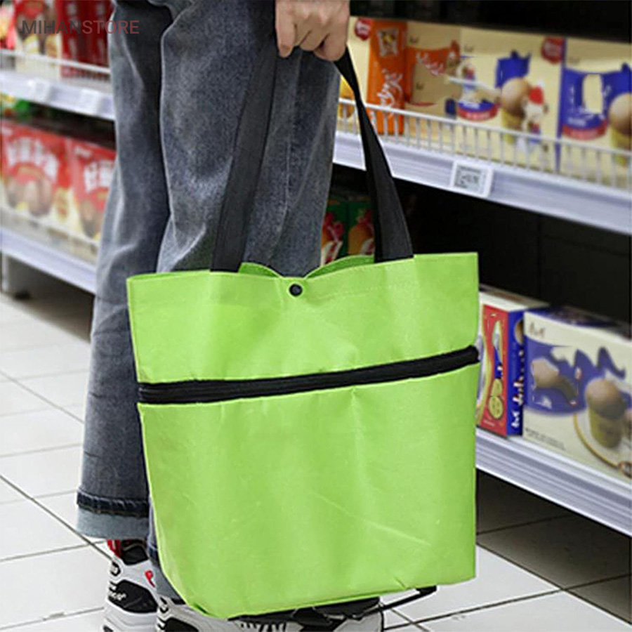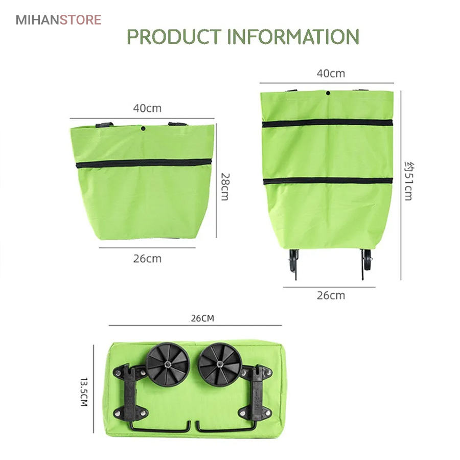 کیف خرید چرخدار تاشو دارای چرخهایی است که به شما کمک میکند بدون اینکه وزن خریدتان را بر روی شانهها یا دستهای خود احساس کنید، خریدتان را بهراحتی حمل کنید. برای استفاده از ساک خرید در حالت چرخدار، کمی تایرها را به سمت عقب کشیده تا از محل خود خارج شوند و در حالت چرخدار از ساک خرید استفاده کنید.