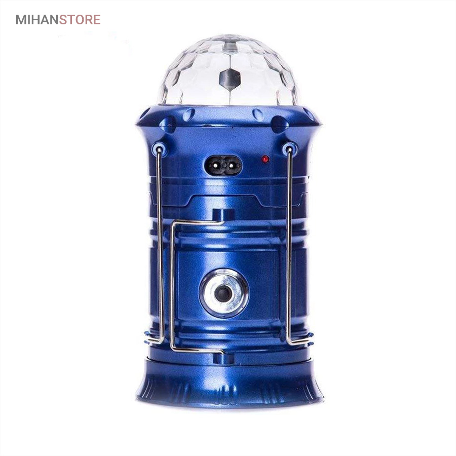 چراغ کمپینگ شارژی رقص نور دار قابل حمل به همراه رقص نور، محصولی با طراحی نوین و بسیار کاربردی است . این چراغ را میتوان تلفیقی از فانوس های قدیمی و چراغ قوه های جدید و رقص نور مدرن دانست .چراغ کمپینگ شارژی رقص نور دار، در واقع یک ابزار چند کاره است و میتواند به سادگی نیاز های شما در رابطه با نور را در مسافرت، پیک نیک و جشن های خانواگی و مواردی نظیر آن فراهم کند . شما میتوانید با کشیدن سر چراغ به سمت بالا (کشویی)، فانوس را روشن کنید و از آن برای تأمین نور محیط استفاده نمایید. چراغ اصلی فانوس دارای 6 چراغ ال ای دی است که در کنار هم نور قوه ای را ایجاد میکنید. همچنین در بالای این فانوس یک شیشه منشوری وجود دارد که هنگام روشن کردن با چرخش و نور پردازی فضای دل انگیزی را برای شما به وجود میآورد. این محصول خرید خوبی برای استفاده در کمپینگ و طبیعتگردی خواهد بود.ورودی برق روی دستگاه بوسیله سیم همراه به برق وصل شده و چراغ را شارژ مینماید تا بتوانید به صورت بی سیم از چراغ استفاده نمایید.خروجی یو اس بی روی دستگاه نیز برای شارژ تلفن همراه شما تعبیه شده است و برای شارژ کردن گوشی موبایلتان است.جنس بدنهی این محصول سبک و کم حجم، جنس بدنه از ABS + PC، محکم و بادوام است که بهسادگی آسیب نمیبیند و این امکان را به شما میدهد تا مدتزمان زیادی بهصورت مستمر از آن استفاده کنید. این محصول وزن قابلقبولی دارد و شما میتوانید بهراحتی آن را حمل کنید و در سفرها به همراه داشته باشید.
